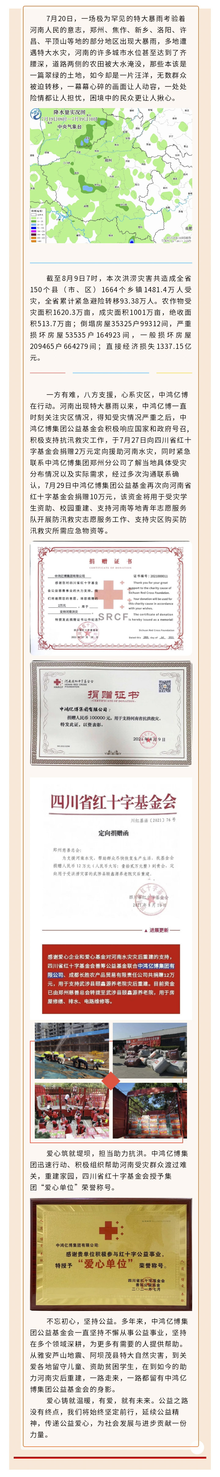 【愛心凝聚力量 希望成就未來】中鴻億博集團緊急馳援河南災(zāi)后重建